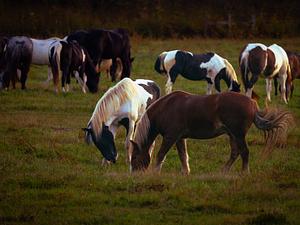 Horses graze at Cades Cove, Great Smoky Mountains National Park.