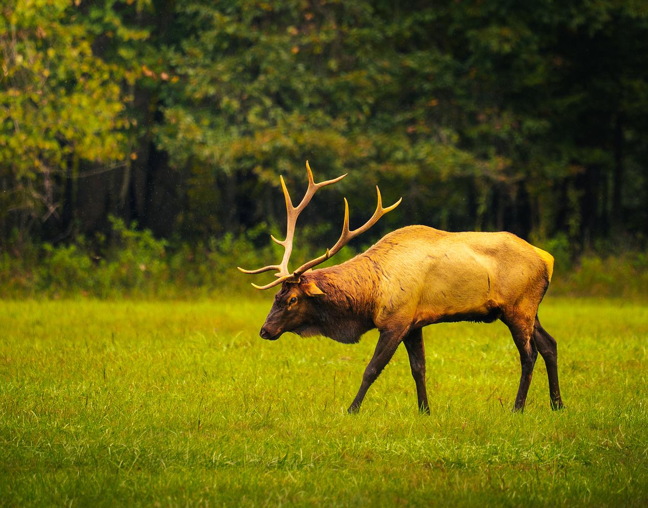 A lone elk bull patrols the pastures of Cherokee in Great Smoky Mountains National Park.