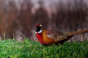 A ring-necked pheasant grazes at the marsh of Sacramento National Wildlife Refuge.
