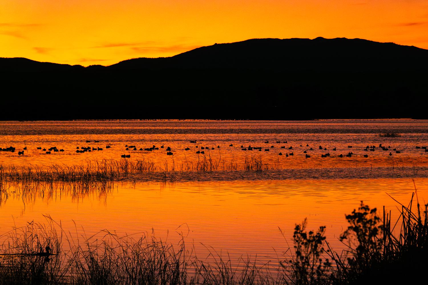 The sun sets over Sacramento National Wildlife Refuge located in the valley of Sacramento River.