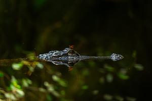 An American alligator surveys the darkness deep within the Big Cypress swamp.