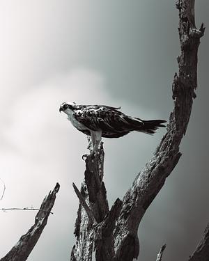An osprey perches over the coastal prairies of the Florida Everglades.