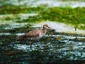 A willet scores a prized crab from the shores of Flamingo, Everglades