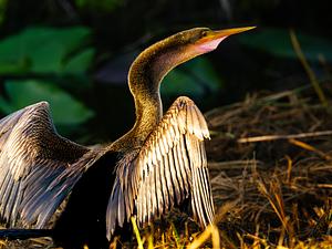 An anhinga basks in the golden hour Florida sunset at Shark Valley, Everglades National Park.
