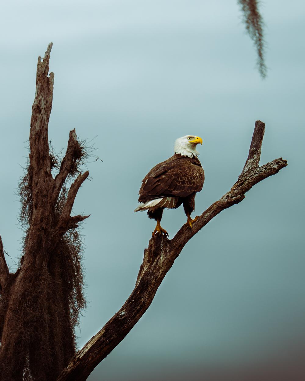 A bald eagle perches at La Chua, Paynes Prairie Preserve.