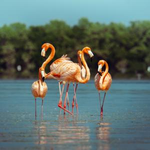 A flamboyance of American flamingos have made Snake Bight in the Everglades their new wading home.